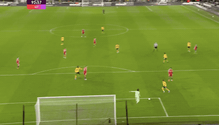 1-1的比分一直持续到了伤停补时阶段,第94分钟,阿利松的传球被拦截,特林达德的射门,打在戈麦斯的腿上有一个明显的变向,阿利松扑救不及。
